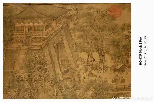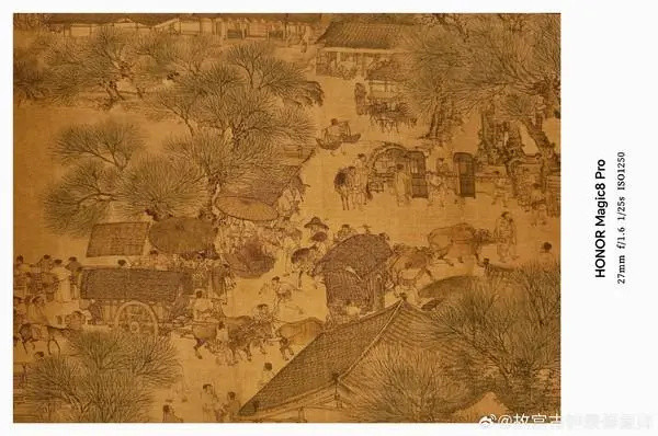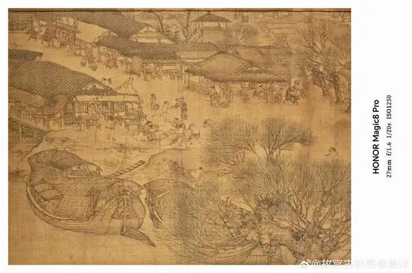 对于普通观众来说,想要近距离拍摄或欣赏类似《清明上河图》《五牛图》等真迹这样的书画文物是相当不容易的。而日前,网间展示的一组荣耀Magic8 Pro凭借2亿像素镜头拍出的真迹照,则让不少网友大开眼界。据悉,在荣耀Magic8 Pro的2亿像素超清主摄与全新影像算法的加持下,图片将《清明上河图》真迹上的人物、屋舍、舟车等细节显示的纤毫毕现。由此也展现了该机强大的影像性能。